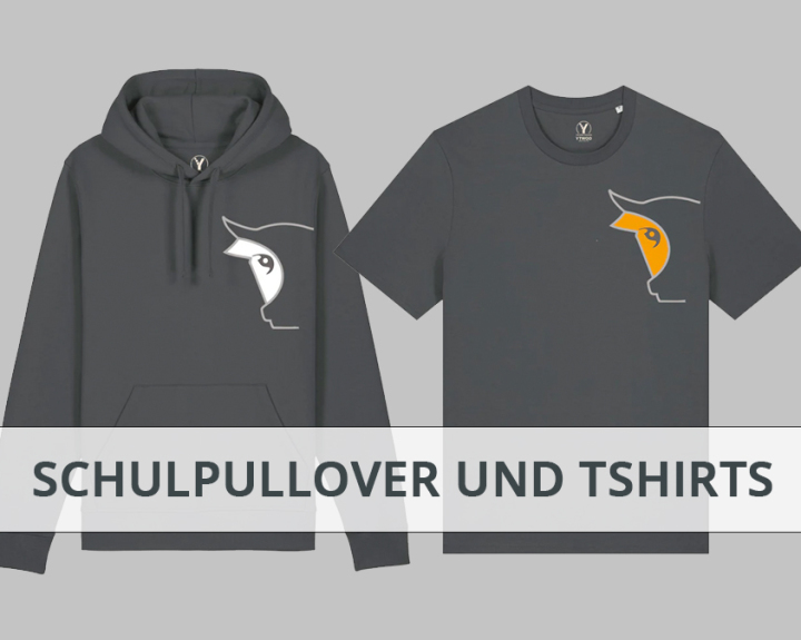 Hier könnt ihr Hoodies und Tshirts mit dem Logo der Schule in verschiedenen Farben bestellen.